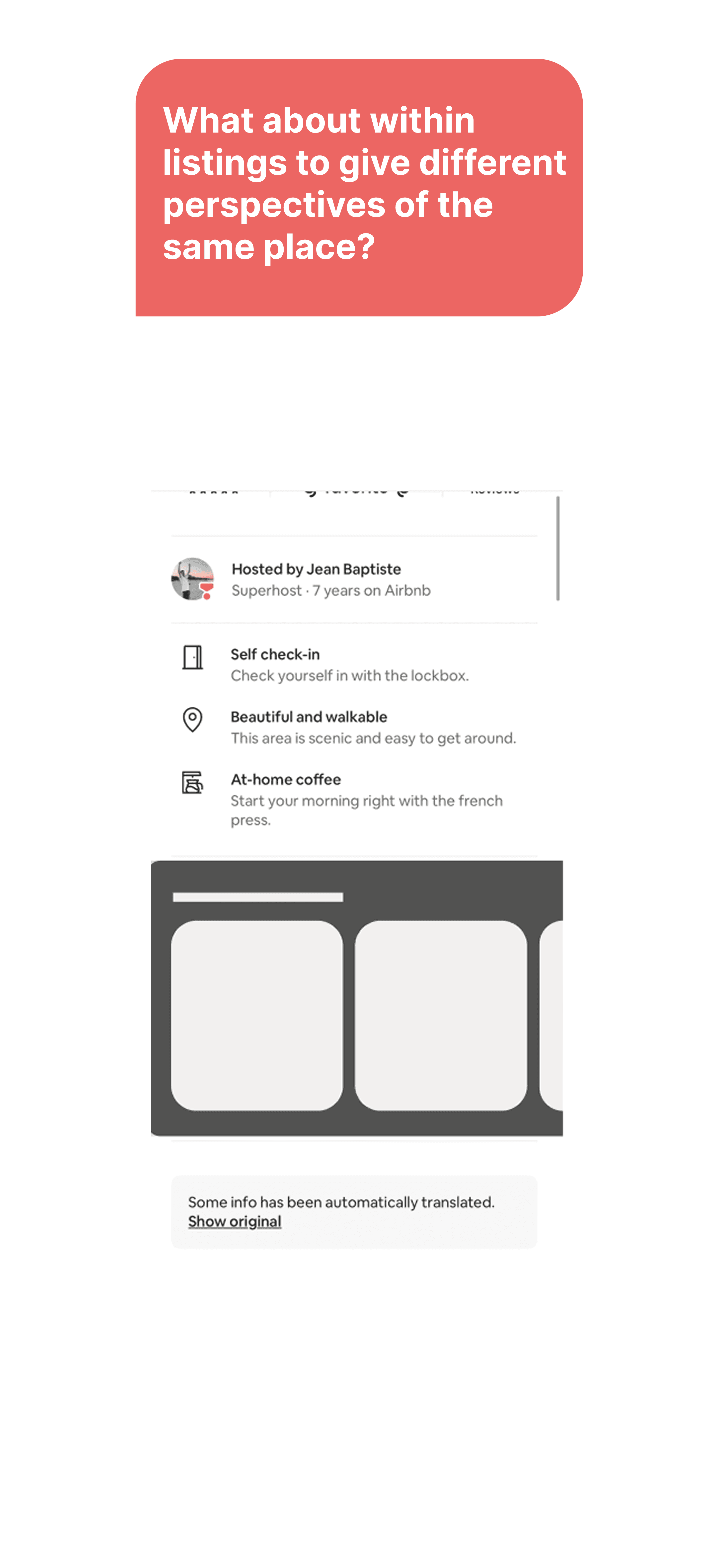 Airbnb needs a feature that serves two types of users: guests and hosts. Guests need a more personalized explore flow, and hosts need a way to tell the story of their listings.