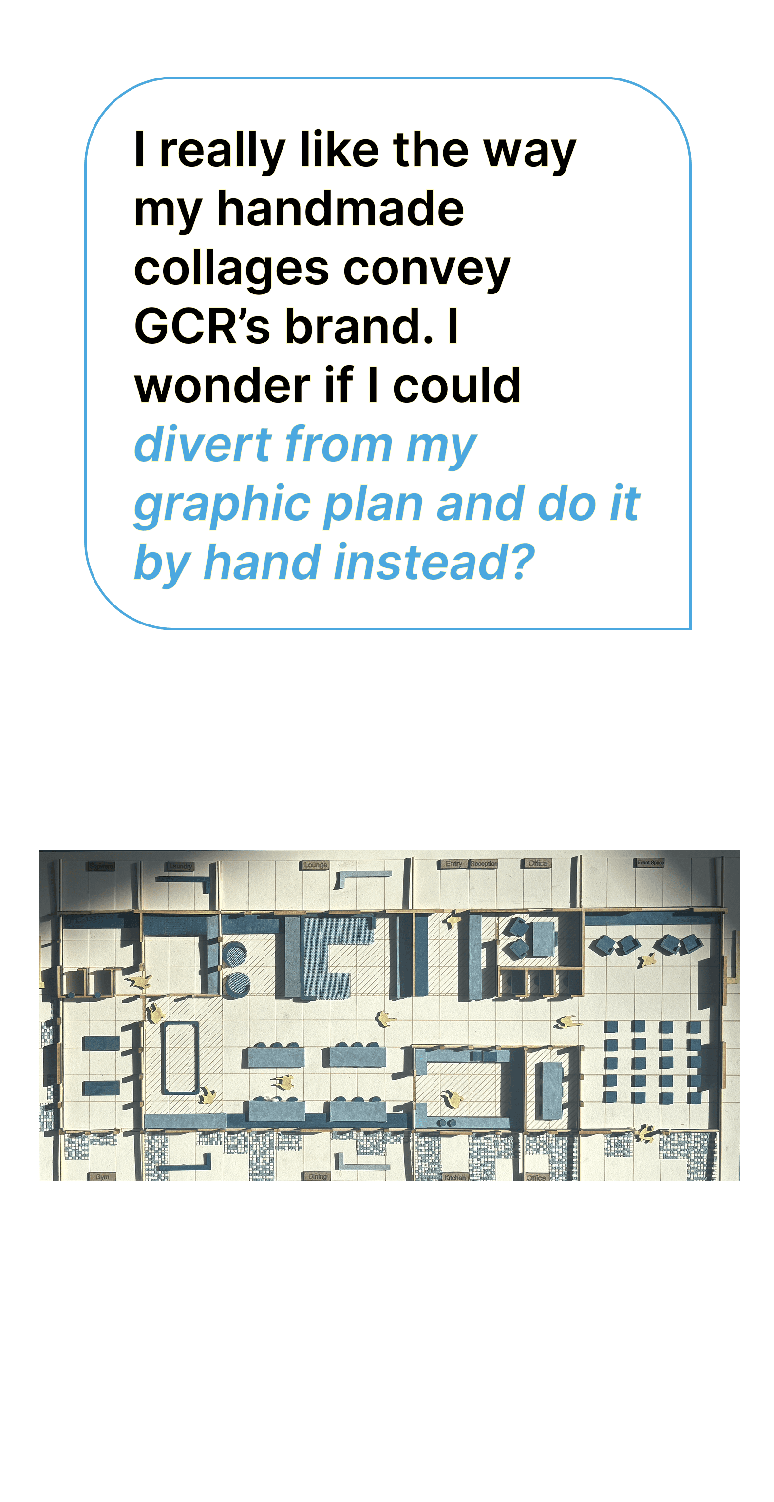 Throughout this project, I learned how to design across mediums- translating user needs from concept to digital assets and into a physical space. Through the process, I gained a deeper understanding of how color, brand language, typography, and imagery translate into material choices, spatial adjacency, enclosure, and light. This project strengthened my ability to both widen and narrow my design thinking, moving fluidly from abstract ideas to technical execution and back again.
