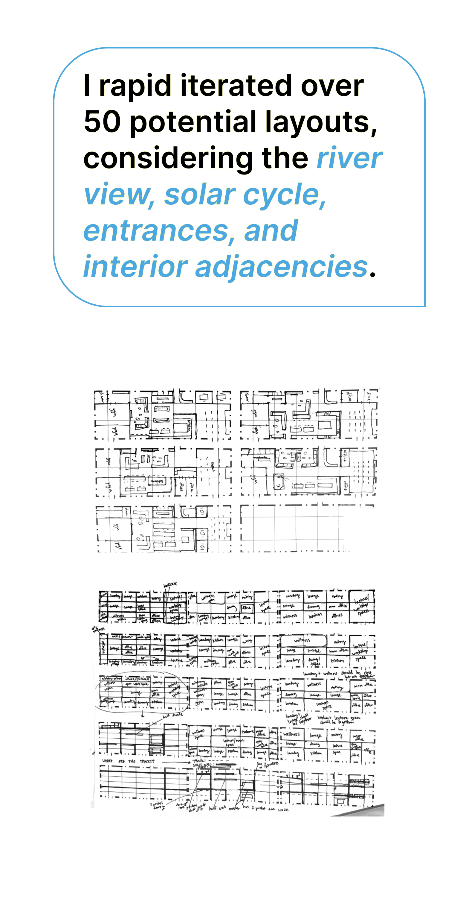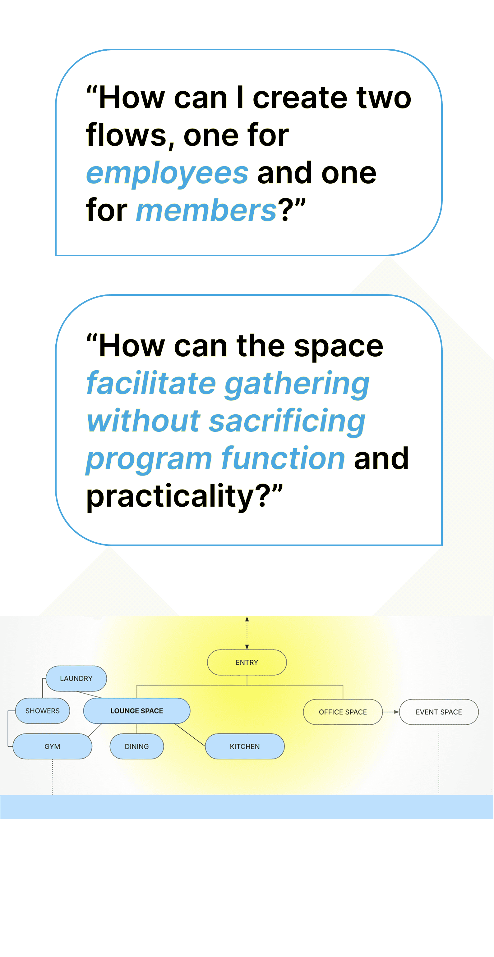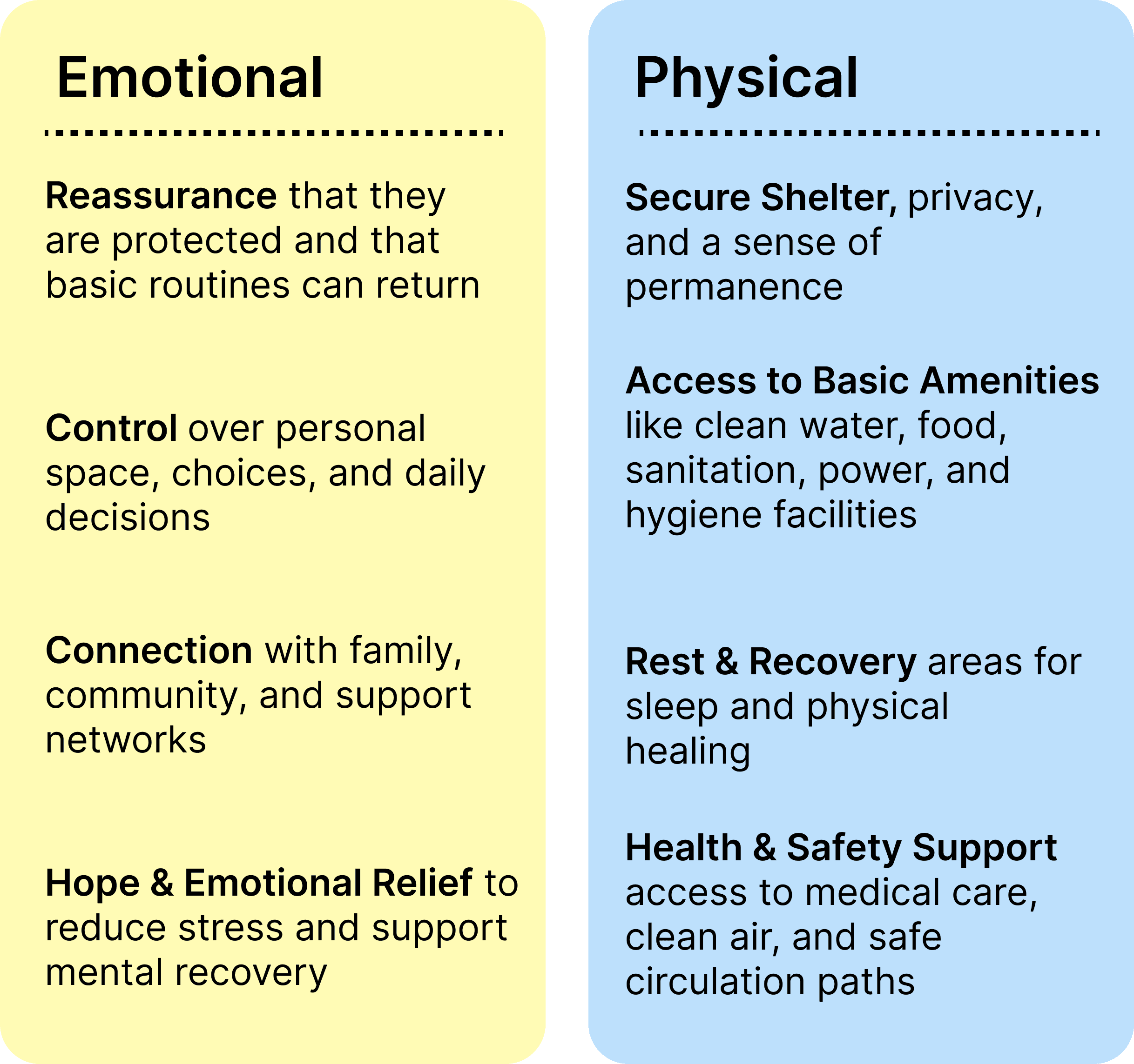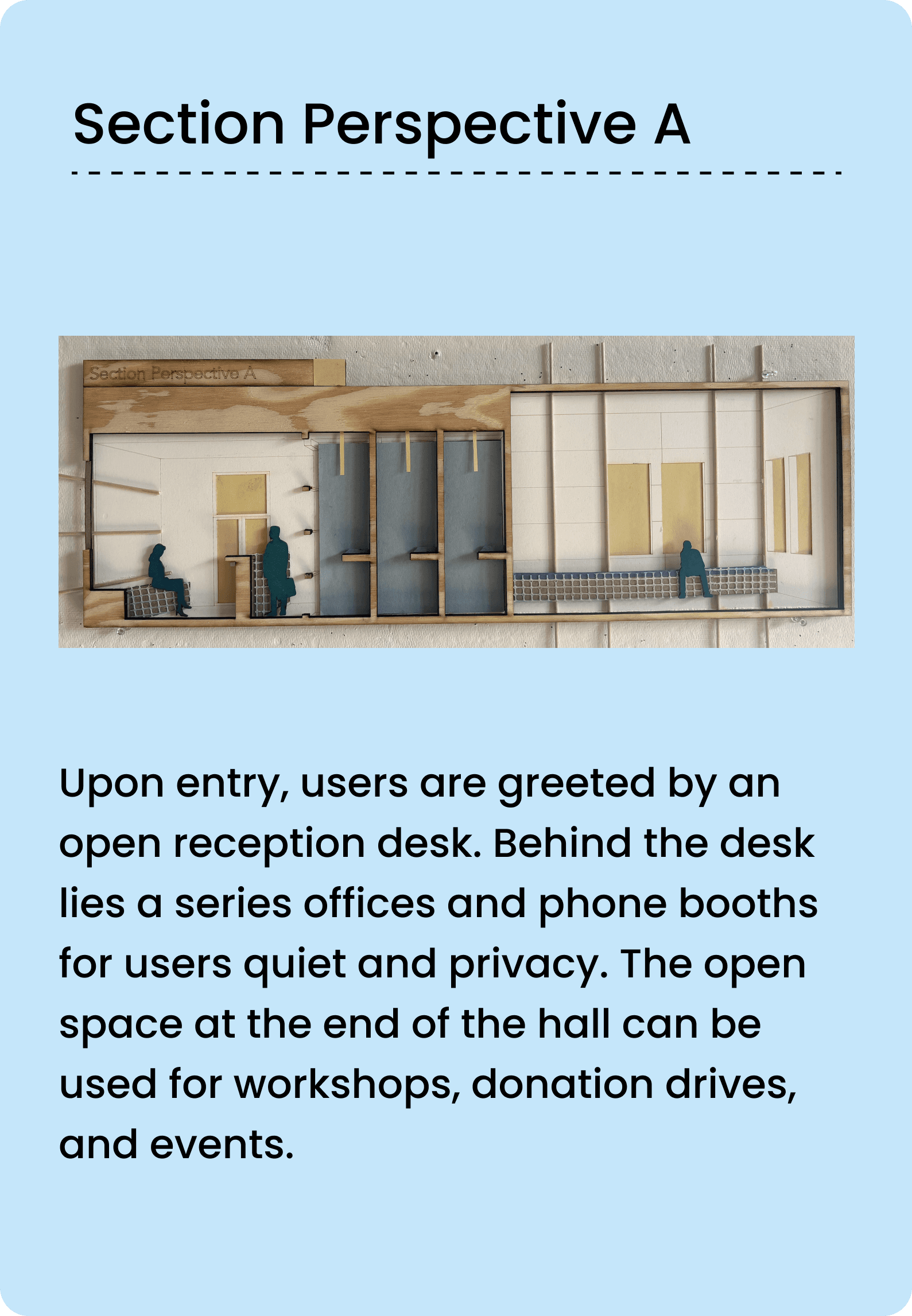 Across two design courses, I designed a non-profit concept end-to-end, building a brand identity into a user-centered interior space concept. This non-profit supports rehabilitation facilities for displaced residents after a natural disaster.