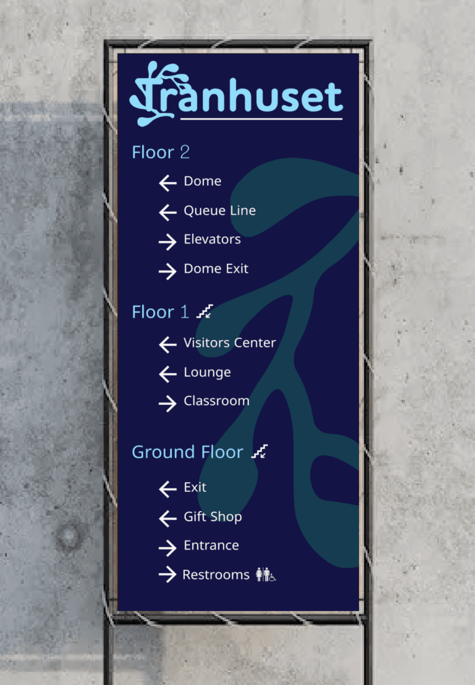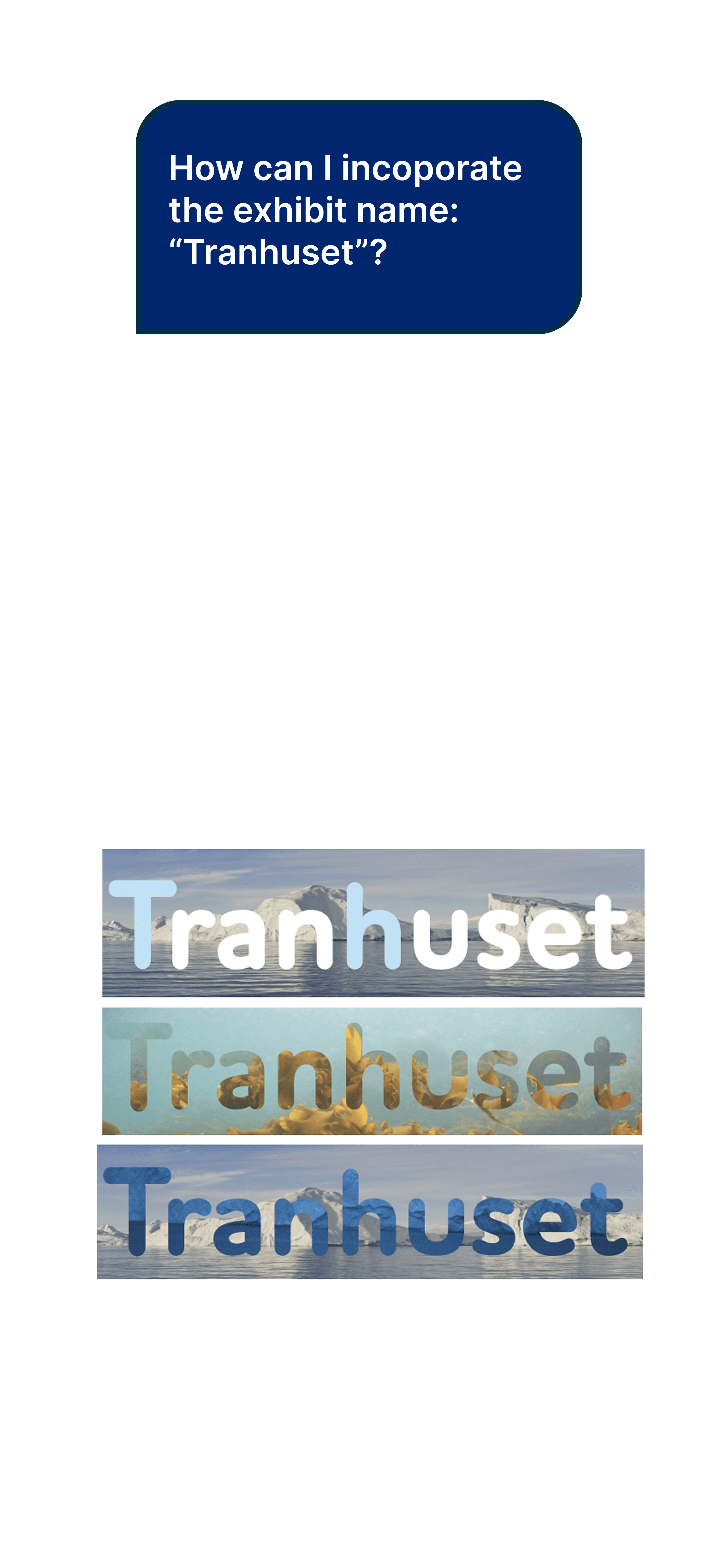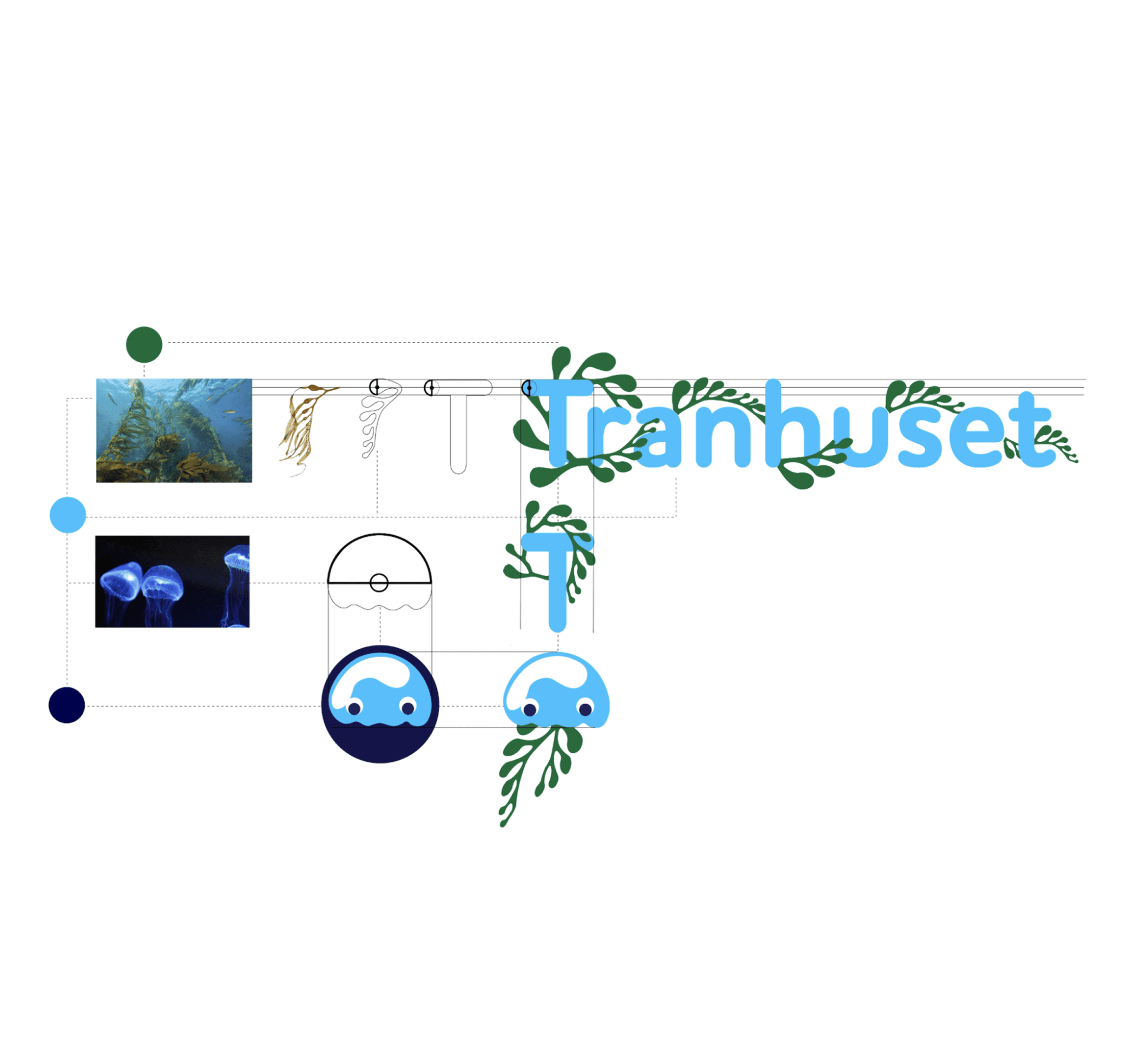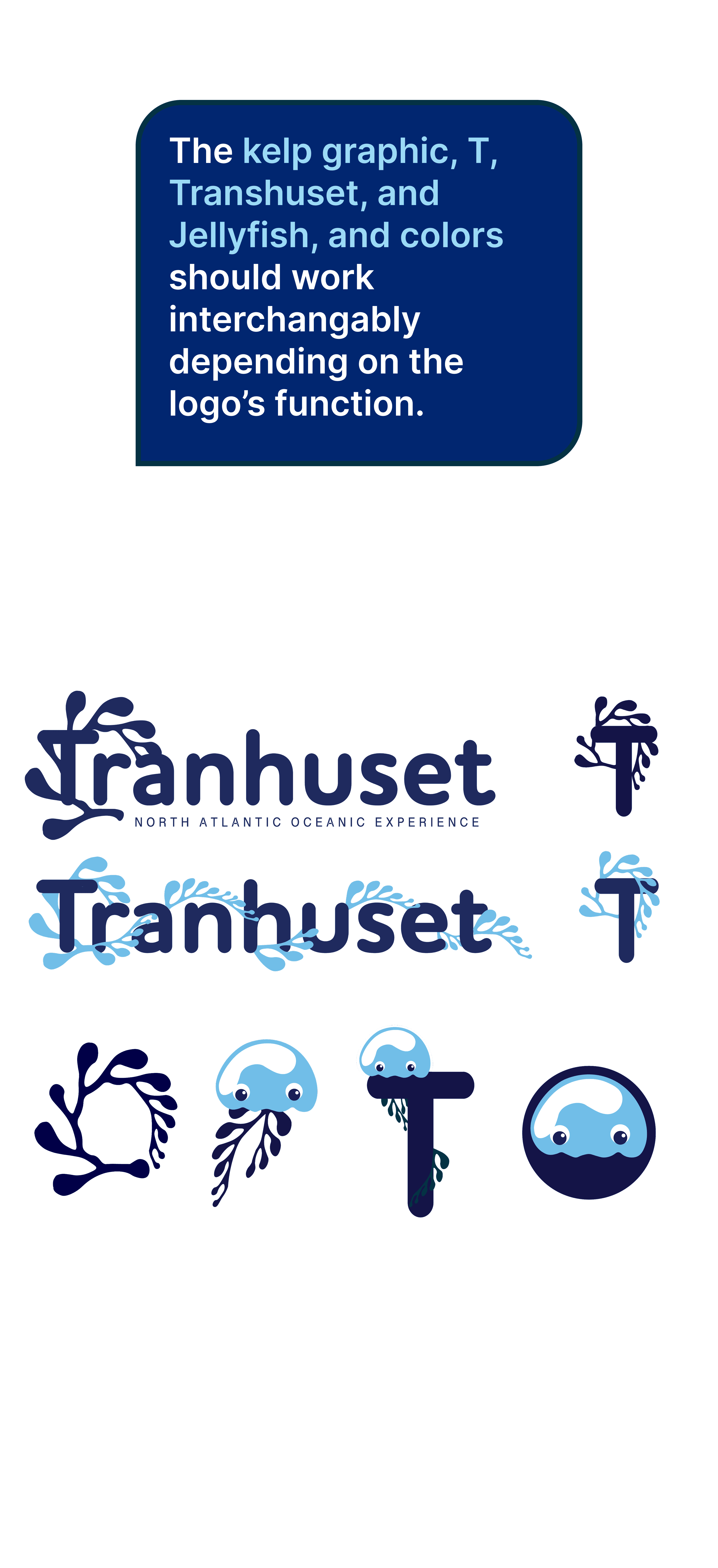 Decision: Minimize type and maximize global symbols and vector based design elements Why: Since the design directors wanted an identity that is recognizable and engaging across language and culture barriers, utilizing solely the kelp, Jellyfish, and name of the museum keep the design relevant and inclusive and reduce potential confusion