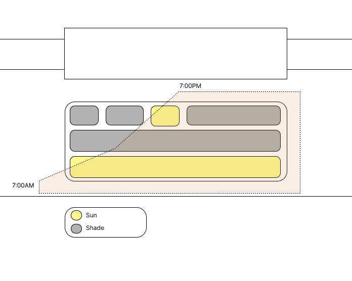 How can I use the sundial and orientation of the streetcar to provide shelter from the elements while creating sun projections into the cave?